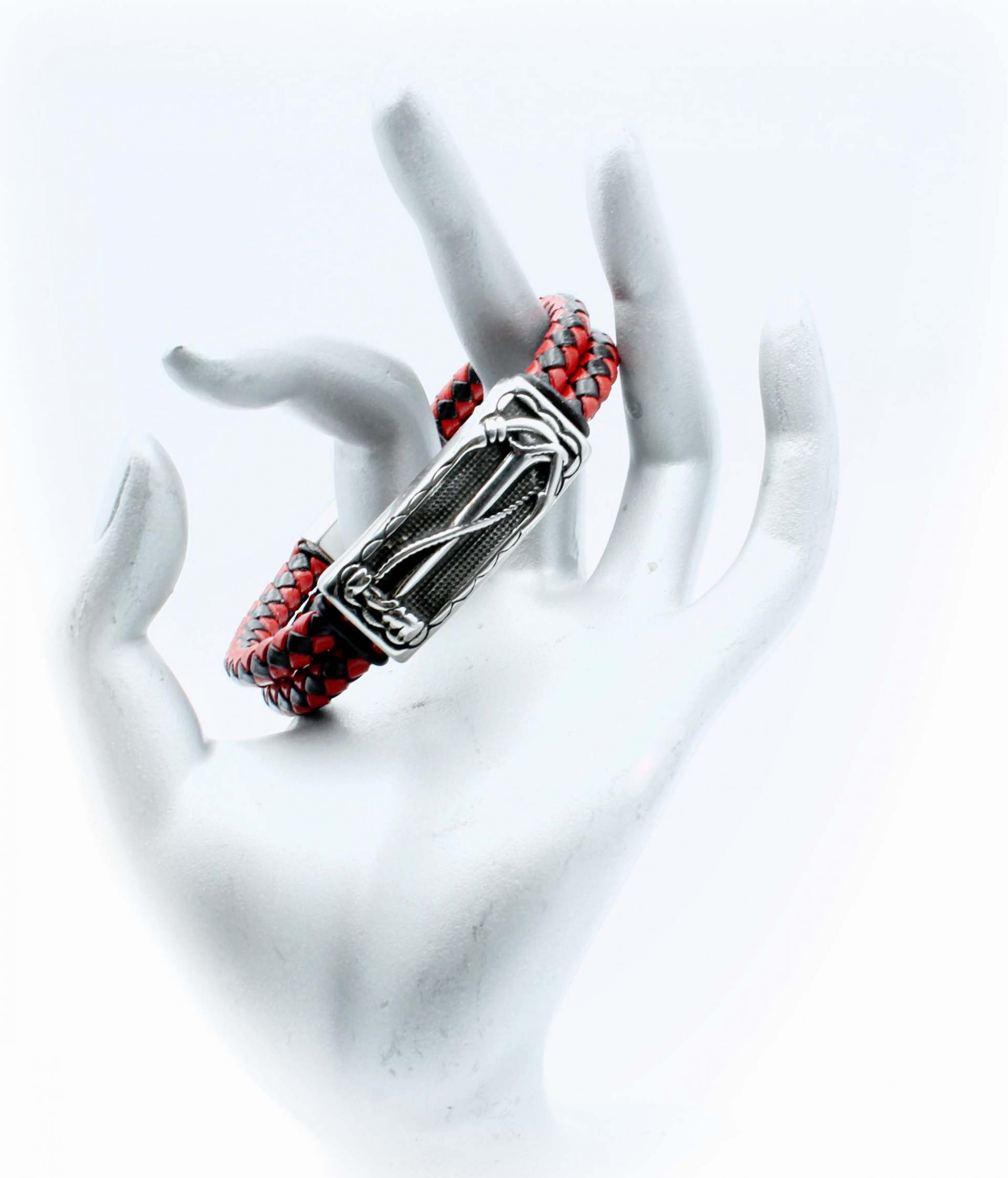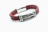 This is a super cool anchor style red and black bracelet that Chrissie C has crafted in a double layer of 6mm bolo leather cord.