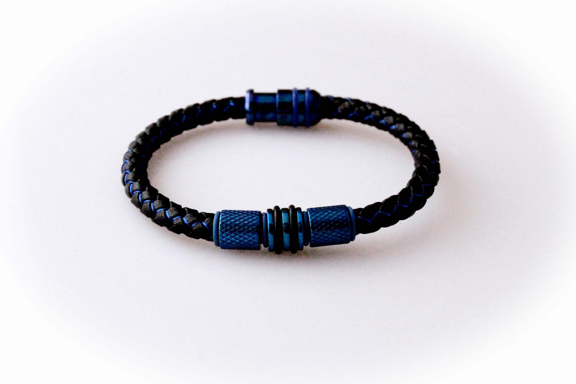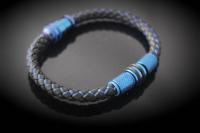 This modern, edgy and unique bracelet crafted to your size by Chrissie C features an unusual 6mm "black and blue mix" braided leather. Interwoven into the genuine leather is a blue silk thread to give this a unique style.
