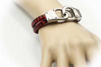 Handcuff Design Leather & Steel Red & Black Bracelet