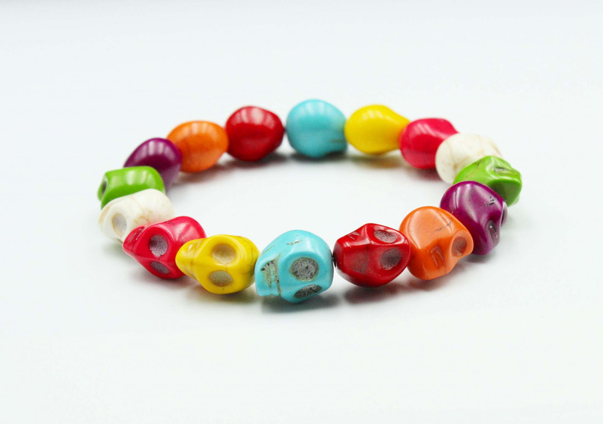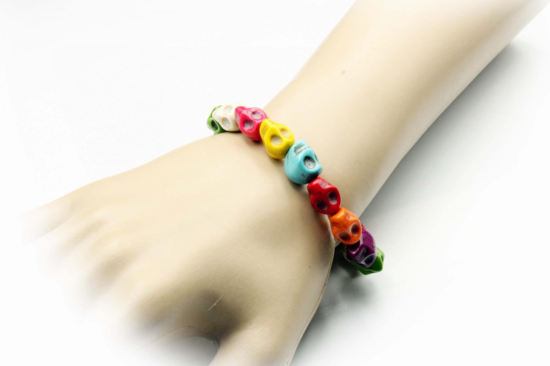 Super cool and super colourful skull bracelet that is "stretchable" to will fit your wrist.