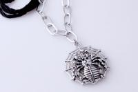 This stainless steel "Spider in A Web" pendant is flight is crafted onto a chain and cord to make a long necklace that looks pretty cool